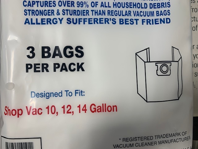 Internal trash bag for tank vacuums sized 10-14 gal tank sizes - 3 Bag Pack